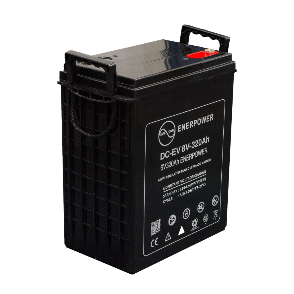 Batteria Deep Cycle Gel 6V 320Ah Enerpower DCEV 320-6. Batteria per veicoli elettrici, golf car, macchine lavapavimenti, piattaforme aeree, gruppi di continuità (UPS), luci di emergenza, antifurto, allarmi, fotovoltaico, servizi di bordo, camper e nautica.