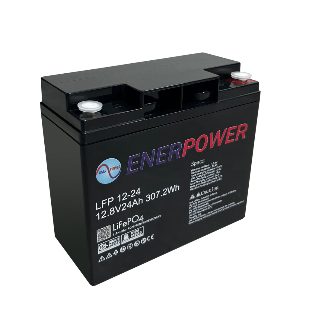 Batteria al litio LiFePO4 12V 24Ah Long Life Enerpower LFP 12-24. Batteria per veicoli elettrici, gruppi di continuità (UPS), telecomunicazioni, luci di emergenza, antifurto, allarmi, fotovoltaico, servizi di bordo, camper e nautica.