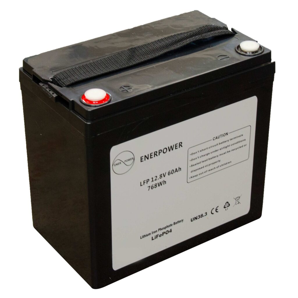 Batteria al litio LiFePO4 12V 60Ah Long Life Enerpower LFP 12-60. Batteria per veicoli elettrici, gruppi di continuità (UPS), telecomunicazioni, luci di emergenza, antifurto, allarmi, fotovoltaico, servizi di bordo, camper e nautica.