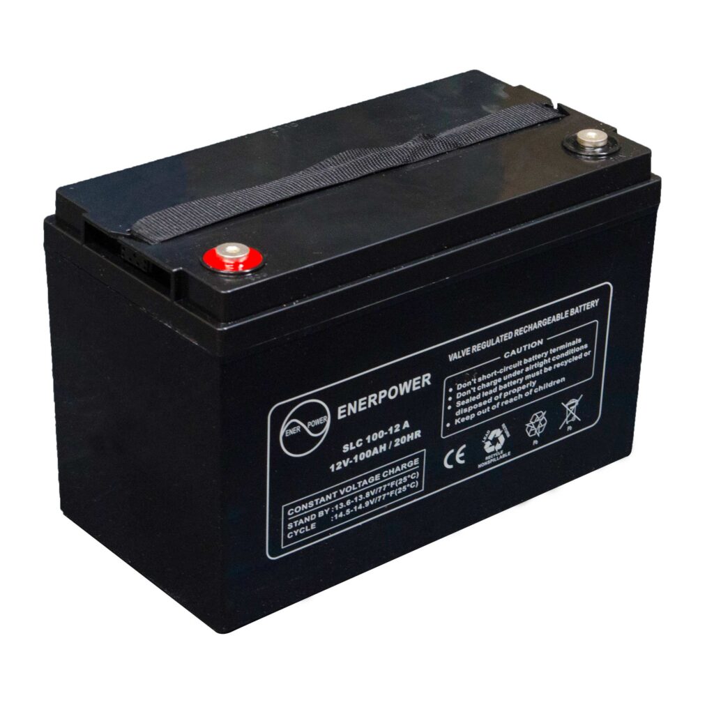 Batteria ermetica sigillata AGM VRLA 12V 100Ah Long Life Enerpower SLC 100-12. Batteria per gruppi di continuità (UPS), telecomunicazioni, luci di emergenza, antifurto, allarmi, fotovoltaico, servizi di bordo, camper e nautica.