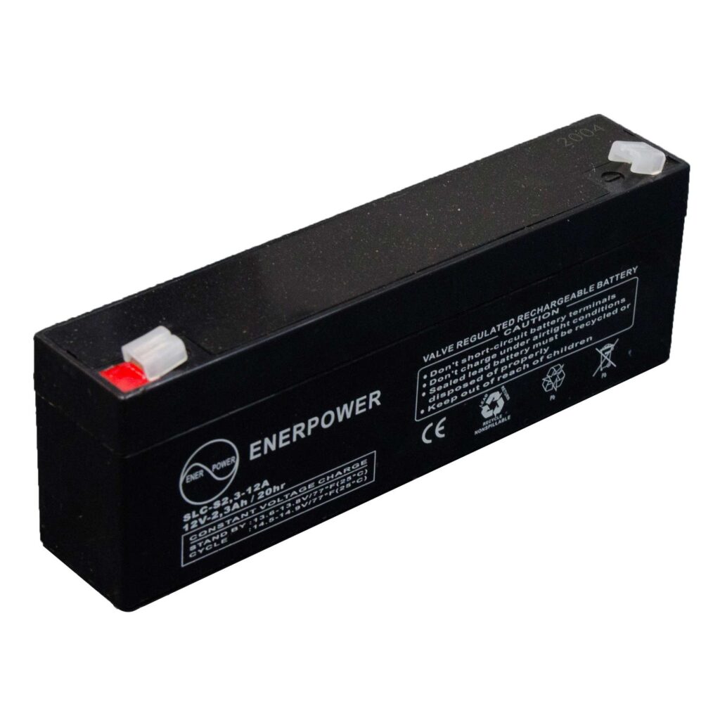 Batteria ermetica sigillata AGM VRLA 12V 2,3Ah Enerpower SLC 2,3-12 per gruppi di continuità (UPS), telecomunicazioni, luci di emergenza, antifurto, allarmi, fotovoltaico, servizi di bordo, camper e nautica.