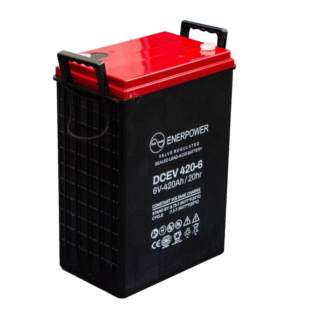 Deep Cycle Gel 6v 420Ah Enerpower Dcev 420-6 . Battery for electric vehicles, golf car, washing machines, aerial platforms, groups of continuity (UPS), emergency lights, alarm, alarms, photovoltaics, on -board services, campers and nautical.